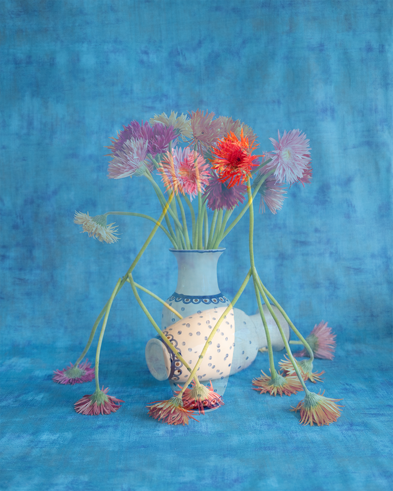 Barbara Ryan’s new series imagines flowers as possessing their own agency and desires, living, perhaps conspiring, behind our backs. What happens when they’re no longer performing for us, no longer held in place? Drawing on the textures and formal compositions of historic still life painting, Barbara uses lenticular printing to animate the moment flowers shift, actively unarranging themselves. The works ask us to consider how much control we ever really have over the things we try to contain or curate.